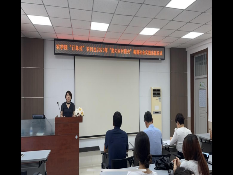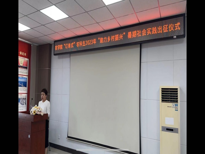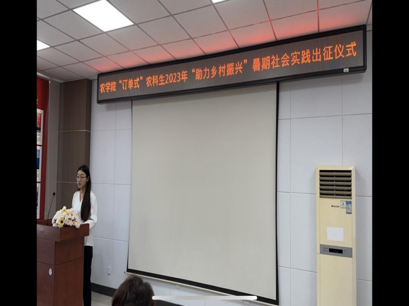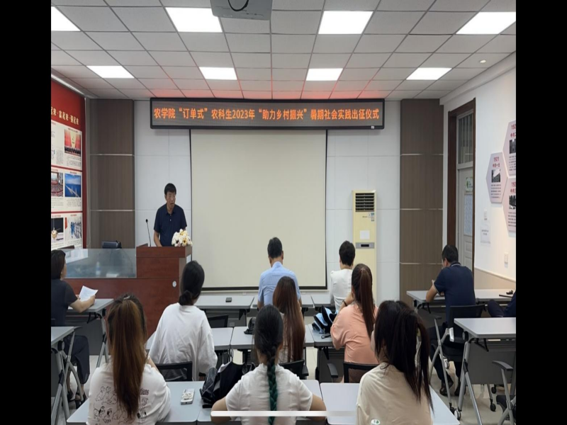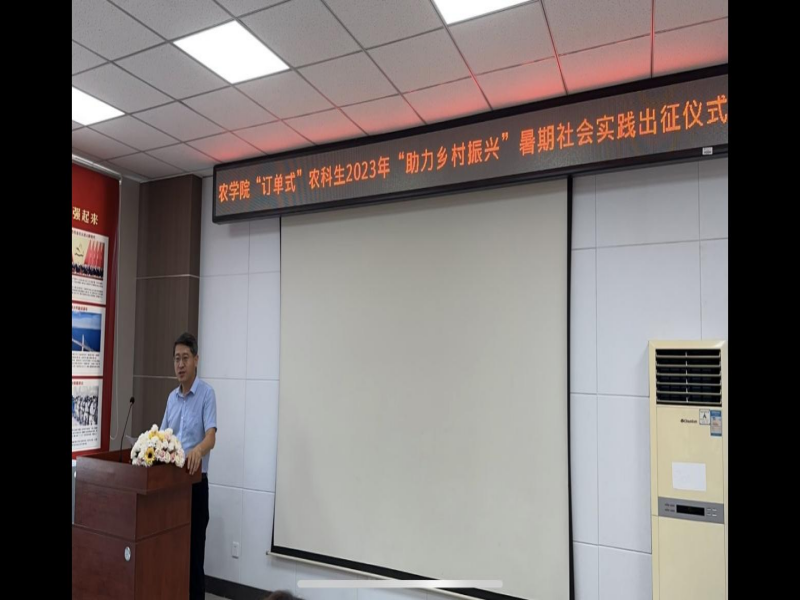 7月20下午,农学院举行了“订单式”农科生2023年“助力乡村振兴”暑期社会实践活动出征仪式,园艺园林系宗成文主任介绍了本次暑期社会实践活动的意义和日程安排,园艺园林系曹丽书记说明了实践活动注意事项,20级园艺专业订单生高嘉瑶作为学生代表进行了表态发言。最后农学院党委刘海峰书记强调三点要求: 第一,要牢牢树立“安全第一”的思想,始终把安全工作放在首位。第二,要扎实服务,力求实效。希望同学们积极学习与实践活动相关的专业知识,提高运用所学知识分析问题、解决问题的能力,真正实现“服务群众、锻炼自我”的双重目标。第三,要进一步巩固现有活动机制,探索新的运作机制。不断创新、探索符合我院特点的活动机制,将我院“订单式”农科生社会实践工作做得更加扎实、更加富有成效,从整体上提高我院社会实践活动的工作水平。仪式由农学院教务办公室主任朴政玉主持。