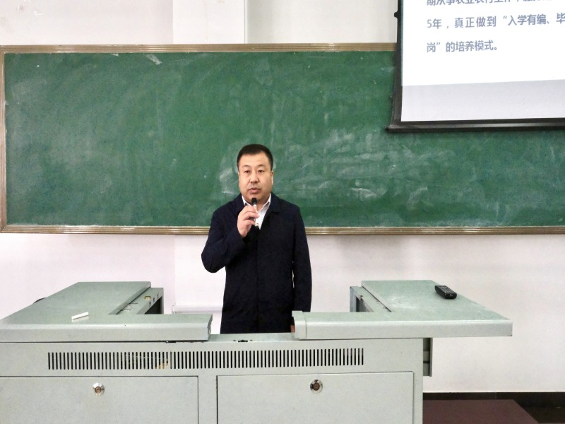报告中,李官浩围绕“订单式”农科生的培养目的、发展前景、政策保障和努力方向四个方面进行详细讲解,针对前期开展的2020级“订单式”农科生实习情况走访调研工作进行介绍,并提出四点希望:一是加强专业课程的学习。突出“复合型、高素质”标准,脚踏实地,做名副其实的把论文写在大地上的延农学子,为实现农业现代化和乡村振兴贡献力量。二是加强实用技能的学习。提高办公软件、公文写作等方面能力,以便尽快融入工作岗位。三是加强岗位实践。充分利用假期到就业地进行实习锻炼,总结经验,以干促学、以学促思。四是争做复合型农业人才。加强多元方向知识学习,提升专业技能素养,做既懂农业知识又掌握现代化信息技术的复合型农业人才。