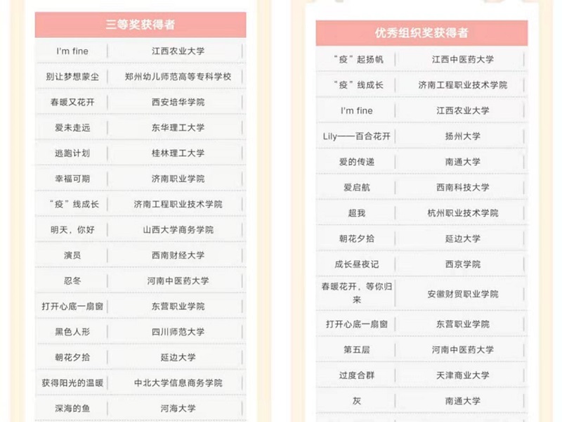自通知发布之日起,在我院党委的正确领导和大力支持下,我院积极组织人员排练、拍摄心理情景剧《朝花夕拾》并参加了第三届全国高校心理情景剧大赛。本次大赛全国共141所高校176个心理情景剧参加评选,经过中国心理学会心理危机干预工作委员会专家、全国高校心理委员研究协作组理事们的精心评审,我院心理情景剧《朝花夕拾》荣获大赛三等奖及网络赛优秀组织奖。