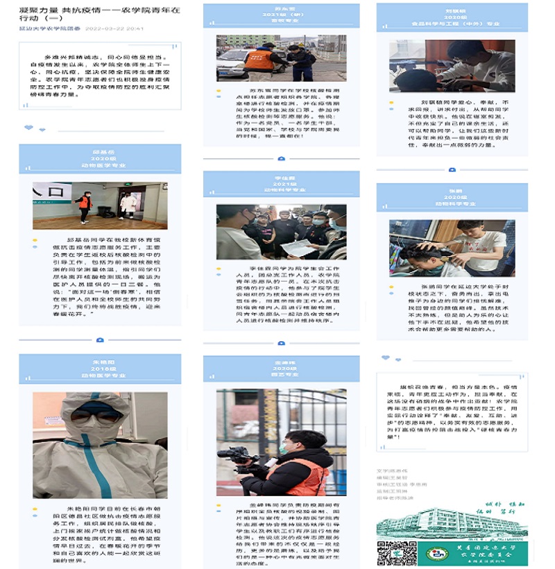 多难兴邦精诚志,同心同德显担当。自疫情发生以来,农学院全体师生上下一心、同心抗疫,坚决保障全院师生健康安全。农学院青年志愿者们也积极投身疫情防控工作中,为夺取疫情防控的胜利汇聚磅礴青春力量。