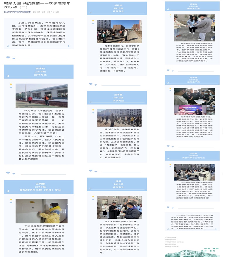 多难兴邦精诚志,同心同德显担当。自疫情发生以来,农学院全体师生上下一心、同心抗疫,坚决保障全院师生健康安全。农学院青年志愿者们也积极投身疫情防控工作中,为夺取疫情防控的胜利汇聚磅礴青春力量。