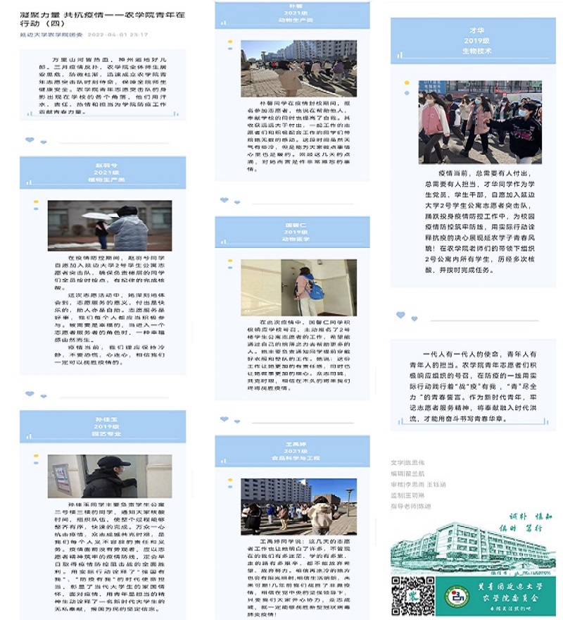 多难兴邦精诚志,同心同德显担当。自疫情发生以来,农学院全体师生上下一心、同心抗疫,坚决保障全院师生健康安全。农学院青年志愿者们也积极投身疫情防控工作中,为夺取疫情防控的胜利汇聚磅礴青春力量。