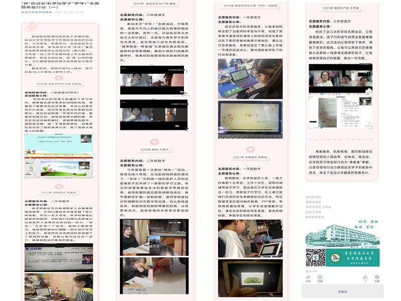 新冠肺炎疫情防控仍处于关键时期,延边大学农学院学子在做好自身防护的同时,主动担当、积极作为,在抗疫后方主动发挥作用,参与延边大学“学伴+”重点学生群体网络学业互助计划(第六期),为抗疫一线人员子女提供线上学业辅导志愿服务,树立全民抗战、战“疫”必胜的信心,为打赢疫情防控阻击战贡献延大青年力量。