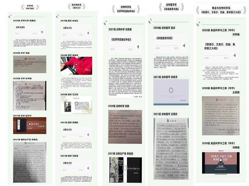 七十三载栉风沐雨,七十三载薪火相传。为庆祝延边大学建校73周年华诞,营造浓郁热烈的校庆氛围,充分弘扬延边大学文化,丰富疫情期间校园文化生活,延边大学开展建校73周年校庆文化月系列活动,农学院积极响应开展线上阅读经典活动,组织同学们对《传习录》、《菊与刀》、《伯罗奔尼撒战争史》、《审美教育书简》、《歌德尔、艾舍尔、巴赫、集异壁之大成》进行阅读。同学们通过“手写摘抄”、“朗读音频”等方式留下阅读记忆,形成阅读成果。