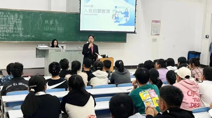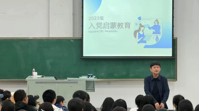 为加强思想政治觉悟,进而激发同学们加入党组织的积极性和主动性,帮助同学们明确入党动机、坚定入党决心、了解入党流程,食品与生物科学系于10月9日19:30在西部教学楼D102、D103开展新生入党启蒙教育活动,本次活动由食品与生物科学系第一学工党支部书记魏佳艺、第二学工党支部书记奈子达主持,2023级全体学生参加。