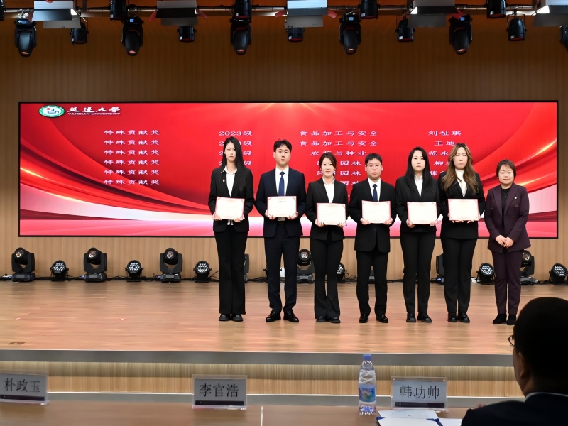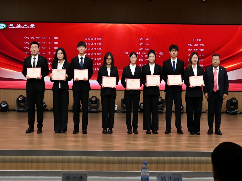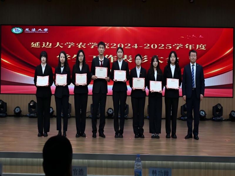 农学院党委副书记金庆国宣读了《关于表彰延边大学农学院2024-2025学年度学生工作先进个人的决定》。61名同学获得“三好学生”荣誉称号,39名同学获得“优秀学生干部”荣誉称号,9名同学获得“优秀研究生”荣誉称号,8名同学获得“优秀研究生干部”荣誉称号,69名同学获得“特殊贡献奖”。与会领导为各奖项获奖学生代表颁发了荣誉证书。